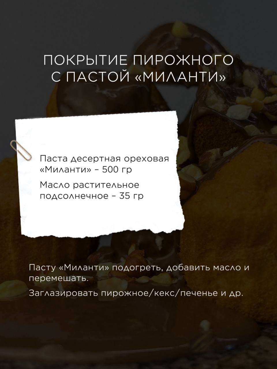 Паста «Миланти» многообразна и проста в использовании: ее можно намазать на хлеб или крекеры, получить вкусное лакомство, а также добавить в кондитерские изделия.