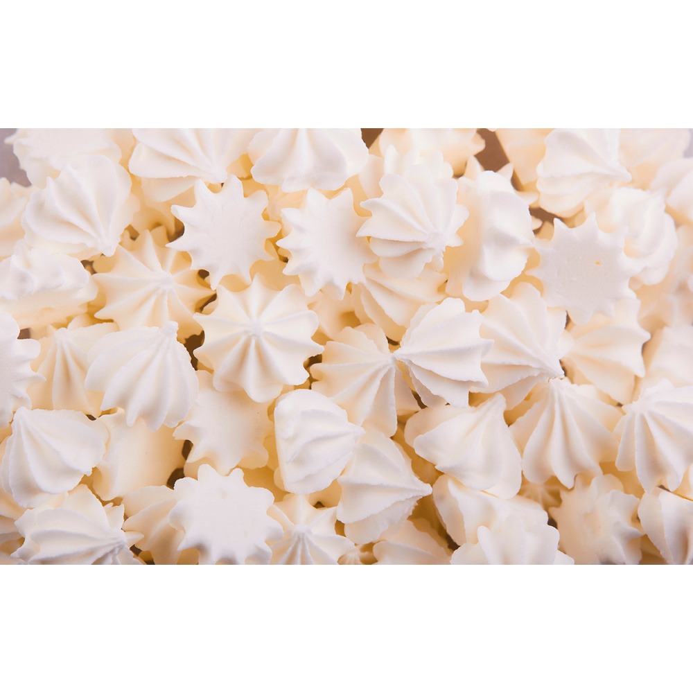 Безе - легкий, технологичный в использовании декор, можно легко применить как в масштабах производства, так и в домашних условиях для декорирования тортов, пирожных, десертов, капкейков; легко крепится на любую поверхность кондитерского изделия, представлен широкой линейкой форм, оттенков и размеров.