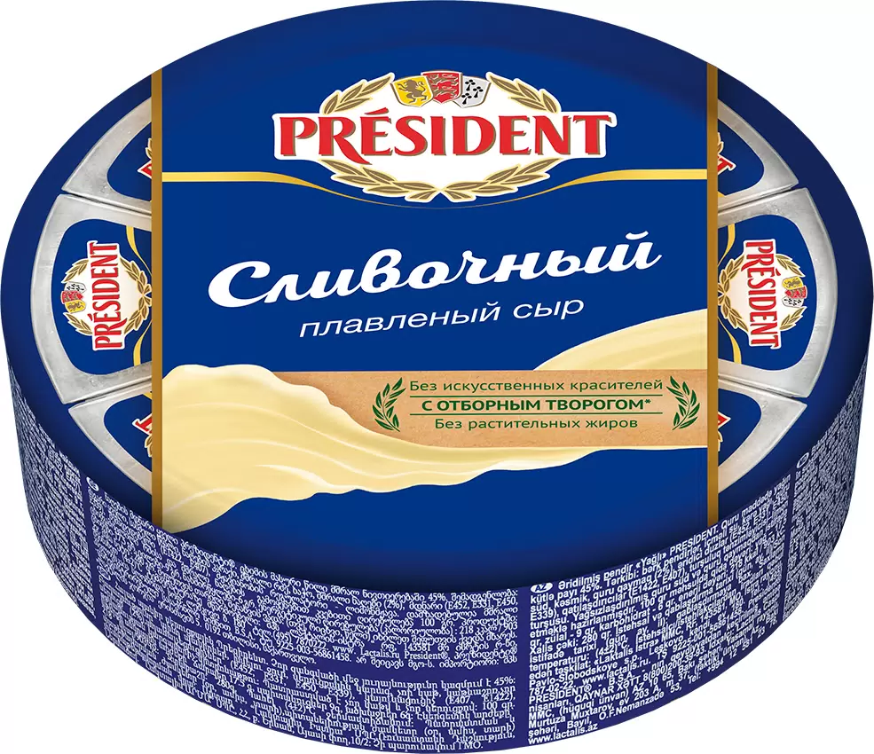 Плавленый сыр President идеально подойдёт для быстрого перекуса или полноценного завтрака, ведь он отлично сочетается с любыми овощами, зеленью, мясом или рыбой и гармонично дополняет их вкус.
