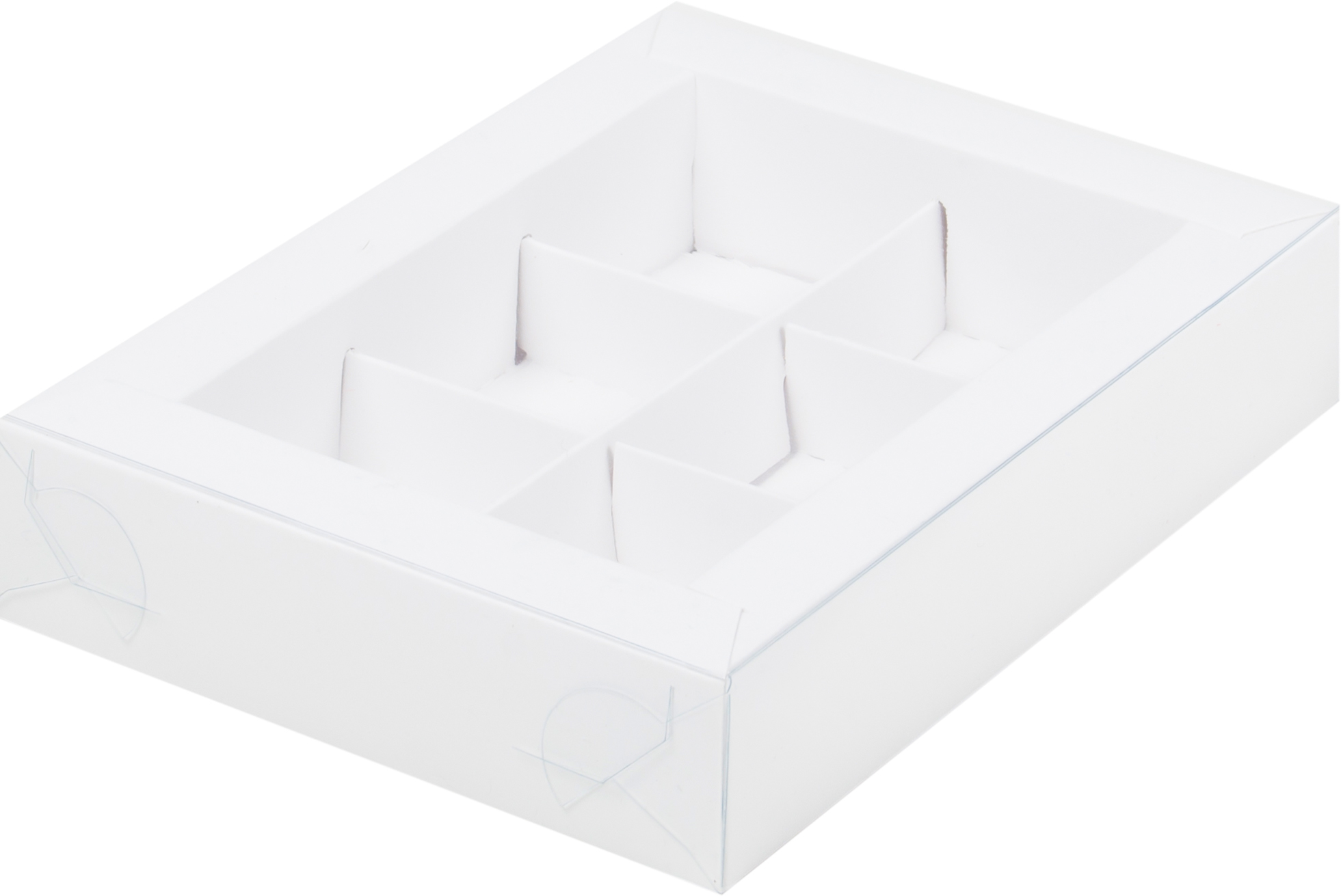 Коробка для конфет (155х115х30 белая пласт/крышкой, 6 конфет 051041)
